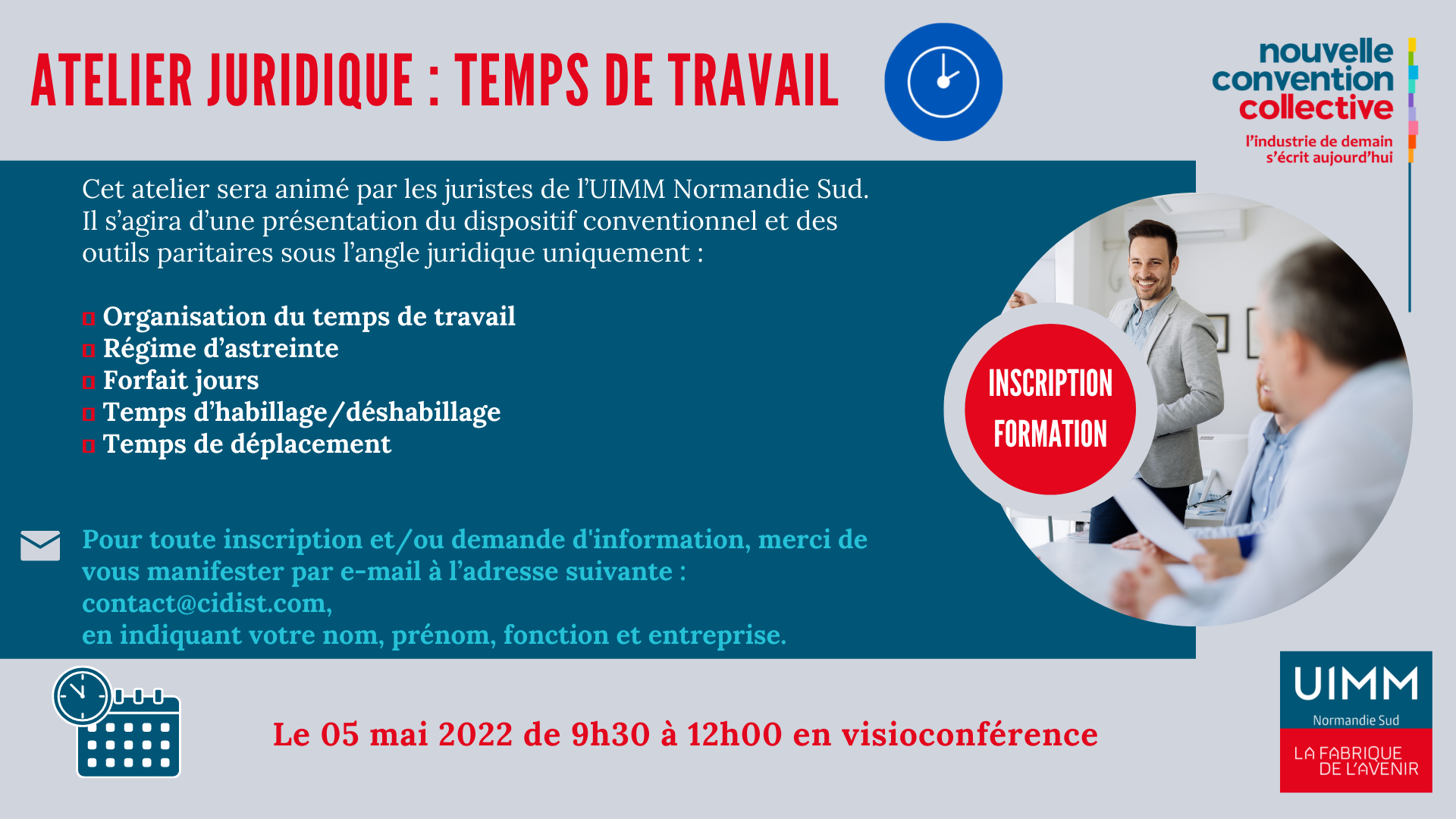 Découvrez dès à présent l’atelier juridique « temps de travail» réservé aux adhérents UIMM Normandie Sud.
